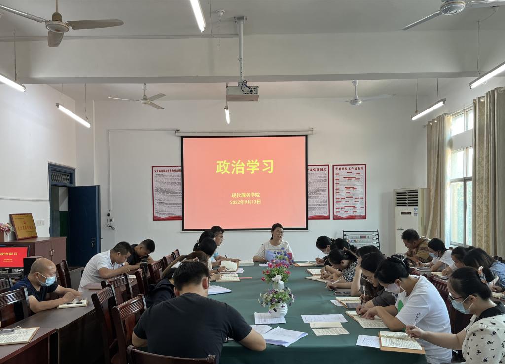 【现代服务学院廖斐报道】近日,现代服务学院党支部开展集中政治学习活动,会议由党支部书记欧阳小缨主持,全体教职工参加。