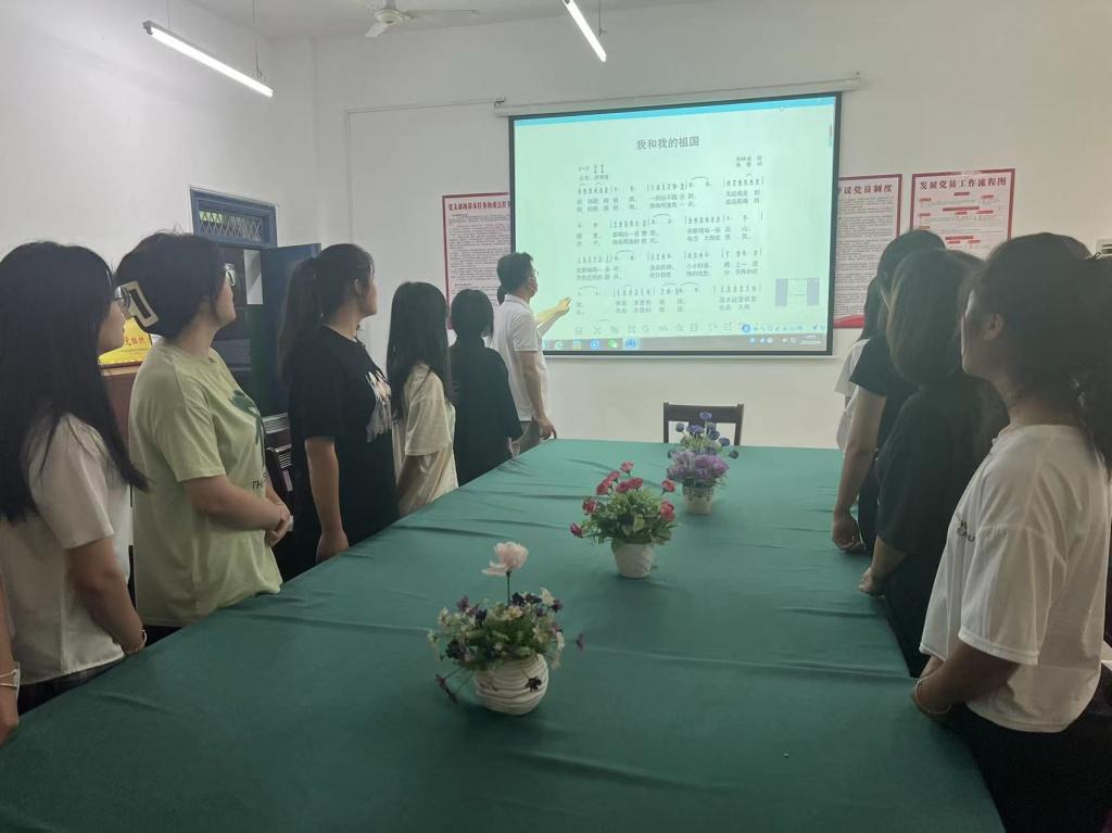 活动第二项,由肖倩芸老师带领同学们唱响歌曲《我和我的祖国》,共同抒发师生对祖国的热爱之情,喜迎国庆,祝福伟大祖国繁荣昌盛。