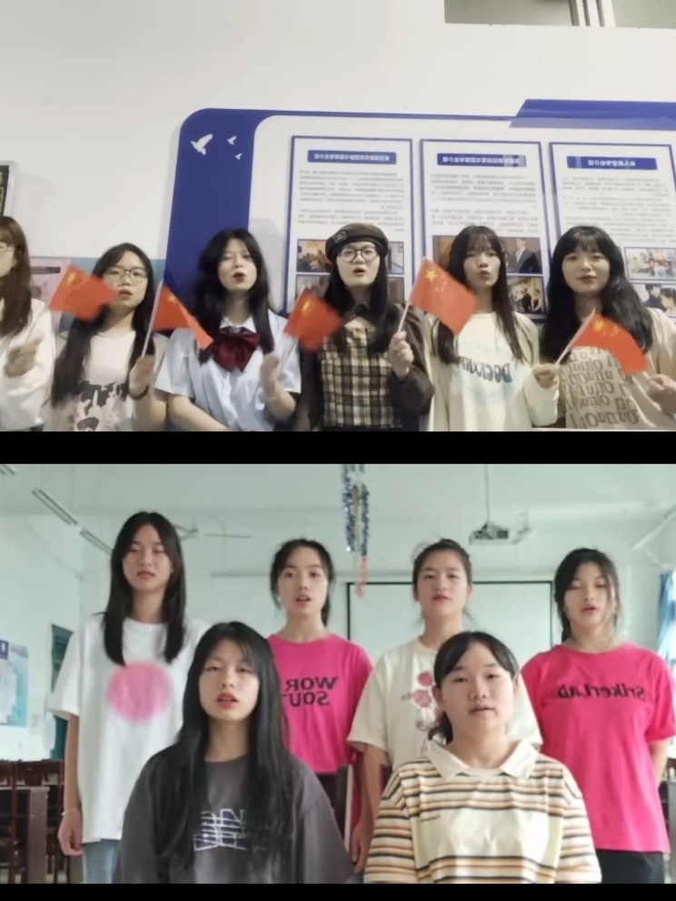 本次活动以寝室为单位,采取快闪的方式。同学们走进教室、来到操场、站在国旗台下,用美丽的歌声为祖国送去祝福。手中的红旗是心中永远抹不去的那一片红,青春的歌声唱出了对党的忠诚,展示了对祖国母亲的无限热爱。