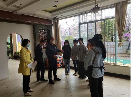 潘山对实习生提出了四点希望:一是要坚持安全第一的原则,绷紧疫情防控这根弦,上下班注意安全;二是理论与实践相结合,积极主动,善于学习,总结反思,收获知识,成长进步;三是贯彻现代服务学院的育人理念,关爱幼儿,加强自身素质的培养和提高,展现学校精神风貌;四是做好角色转换,立足岗位,虚心请教,多向园方老师学习,以成为一名卓越的幼儿教师为目标,为新余的幼教事业争光添彩。