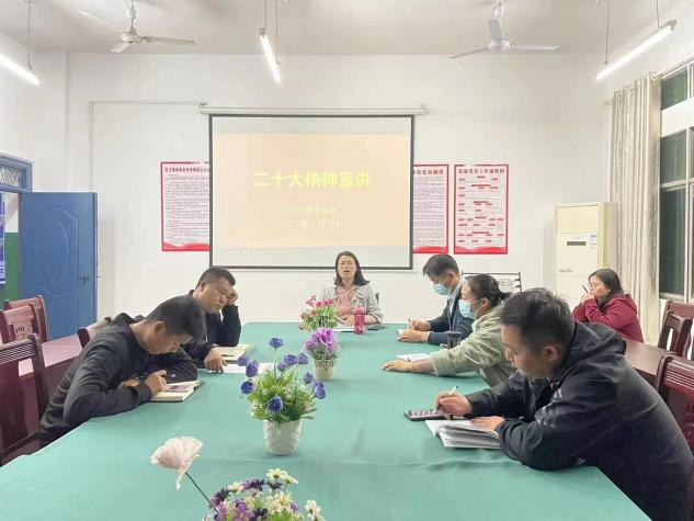 【现代服务学院周明霞报道】2022年11月20日,现代服务学院在党员活动室召开学习宣传贯彻党的二十大精神宣讲会。会议由党支部书记欧阳小缨主持,全体党员干部参会。