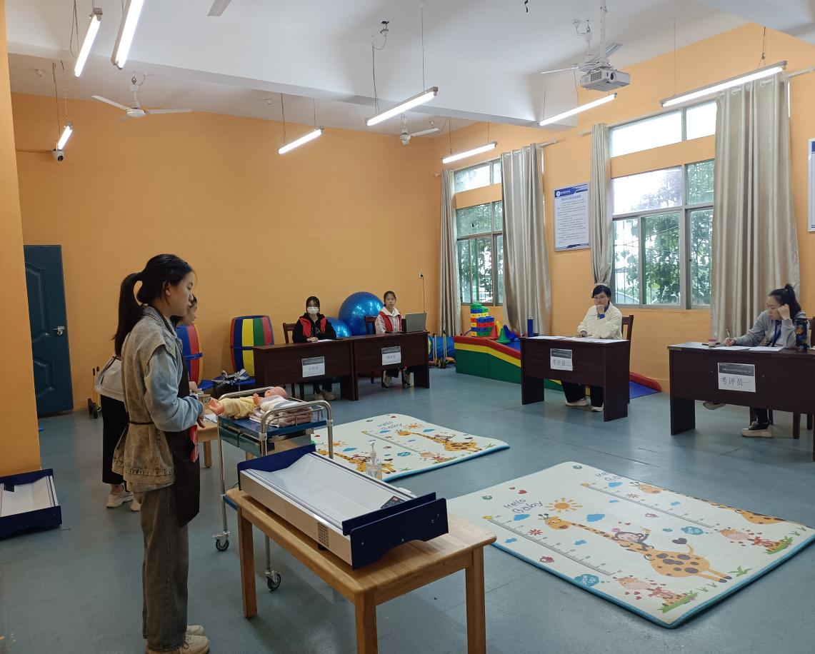 【现代服务学院吴金花报道】11月27日,学院举办了1+x幼儿照护职业技能等级证书考试。考试分理论考试和实操考试两部分,分别在图书馆四楼和北校区三教一楼举行。2021级幼儿保育专业和2021级婴幼儿托育服务与管理专业共120名同学参加考证。