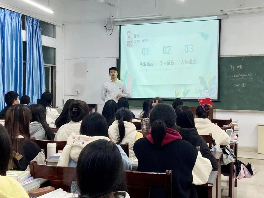 党支部书记欧阳小缨在挂点班级讲道:大学,是我们人生的另一个新起点,高考像是一个分水岭,高考之前你的人生是必答题,高考之后你的人生面对的是无数的选择题。真正意义的大学,是每个幸运的大学生生命中最重要的旅程,是第一次真正意义上的“自主学习”。希望同学们能够顺利及时完成角色转化与定位,使大学生活过的充实有意义。