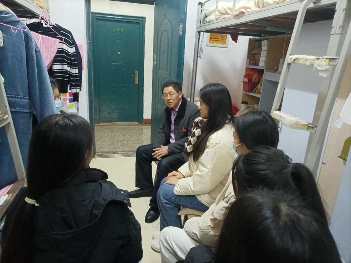 【现代服务学院周明霞报道】12月5日下午,学院党委委员、副院长谢翀来到新五栋学生宿舍,与挂点宿舍同学们零距离交流,深入了解学生的学习和生活情况。