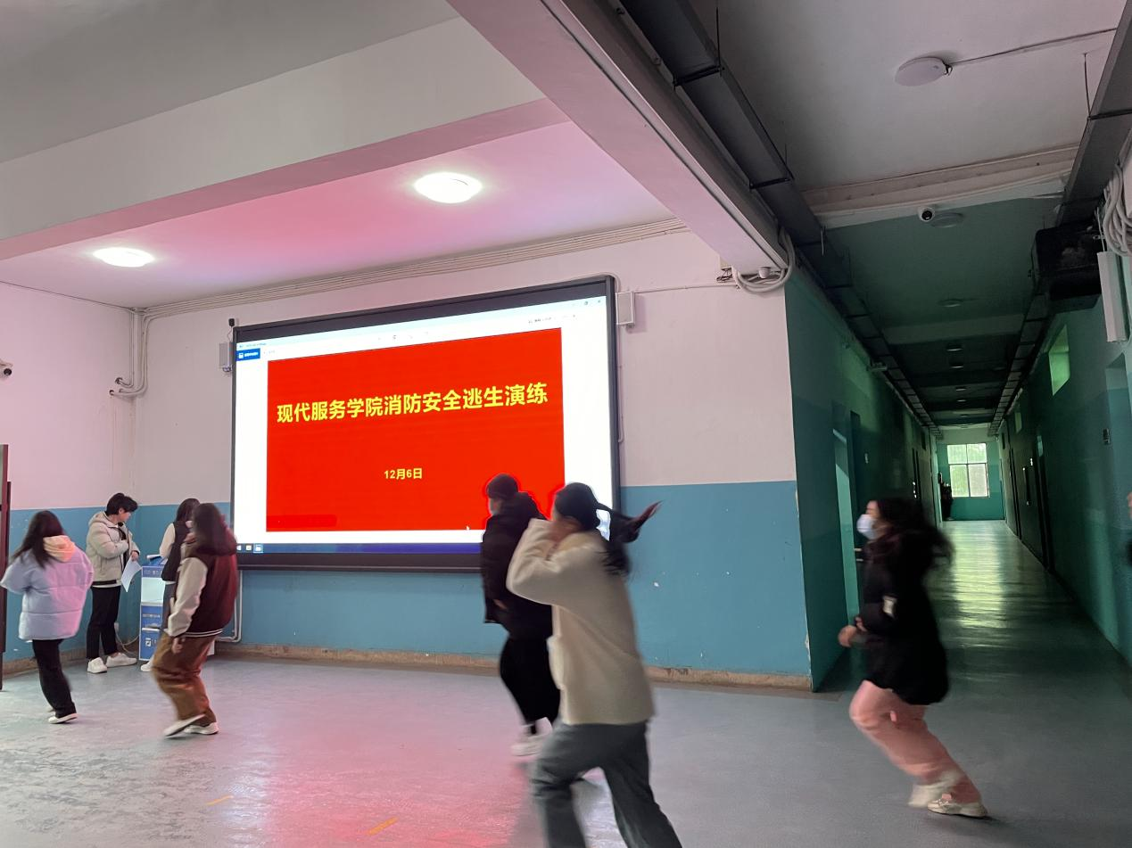 【现代服务学院周明霞报道】为落实学校消防安全工作要求,进一步提高同学们的消防安全意识,增强同学们的消防安全逃生能力,12月6号下午,现代服务学院在老三教开展了消防安全逃生演练活动。