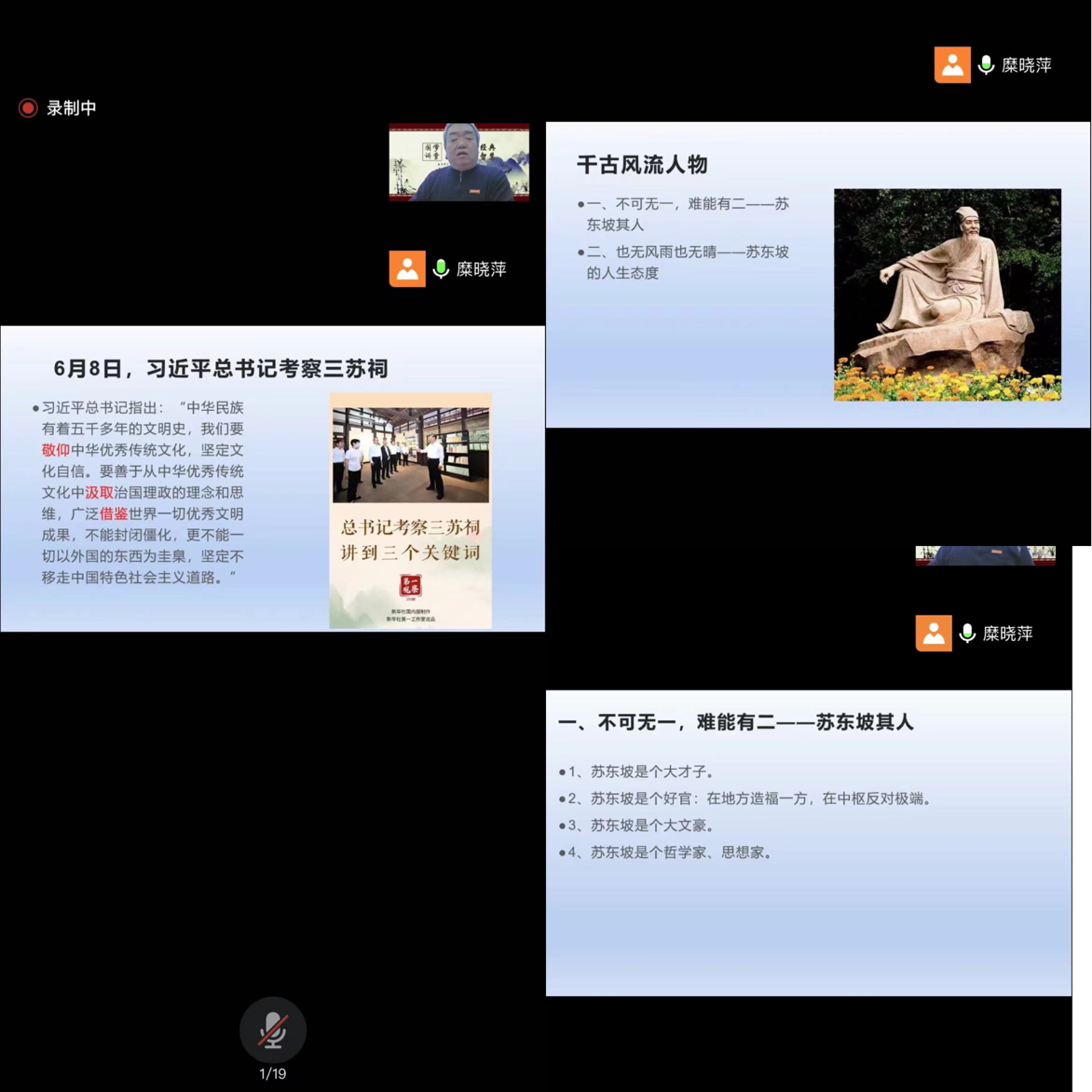 会后,大家进行了热烈地学习讨论,党支部书记欧阳小缨在听完国学讲堂后说到:“通过聆听讲座,对苏轼大文豪有进一步的了解。苏东坡的诗、词、散文、书法、绘画等都有极高的艺术成就。首开豪放派词风,成为豪放词派的开创者。又是宋代古文运动的领袖,位列唐宋八大家。他的为学、为官、为人值得我们学习。”