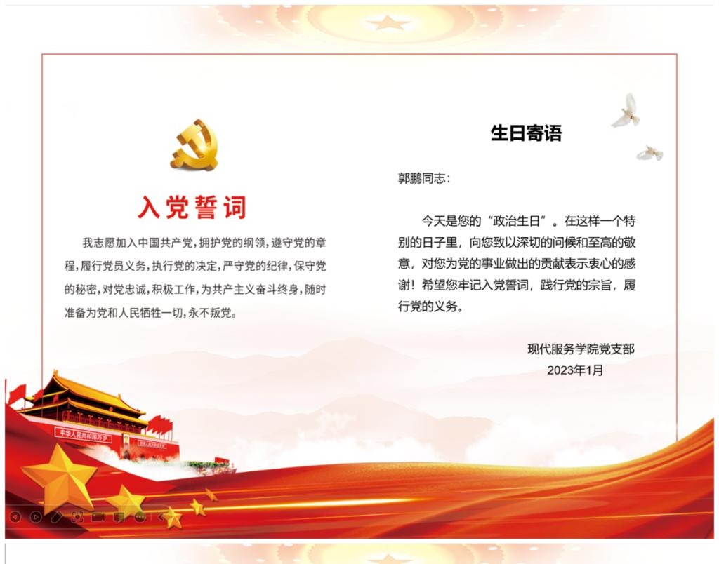 活动为过政治生日的党员送上了最真挚的政治生日祝福,勉励其不忘入党初心,牢记职责使命,强化宗旨意识和责任意识,充分发挥共产党员的先锋模范作用。接着,过政治生日的党员怀着无比激动的心情发表了生日感悟,两名党员代表回顾了自己入党的经历和初心,同时结合工作成长经历,与大家共同“忆初心、话党情、感党恩”。最后,全体党员在过政治生日党员的领誓下,对着党旗重温入党誓词。
