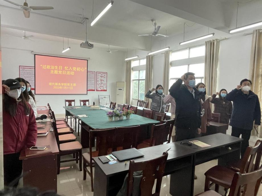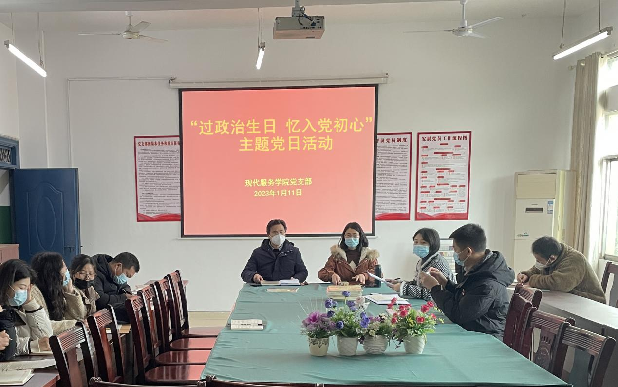 【现代服务学院廖斐报道】1月11日上午,现代服务学院党支部开展“过政治生日 忆入党初心”主题党日活动,进一步强化党员们的身份意识、责任意识和宗旨意识,提高党性修养,永葆初心使命。