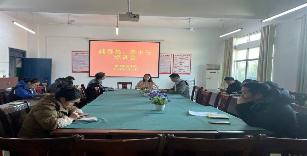 【现代服务学院赵令弘报道】2月27日,现代服务学院在北校区三教党员活动室开展辅导员班主任培训。培训旨在进一步提高辅导员班主任的业务素质和专业技能,强化学生工作团队建设。培训特邀了优秀班主任宁忠老师前来分享工作经验。