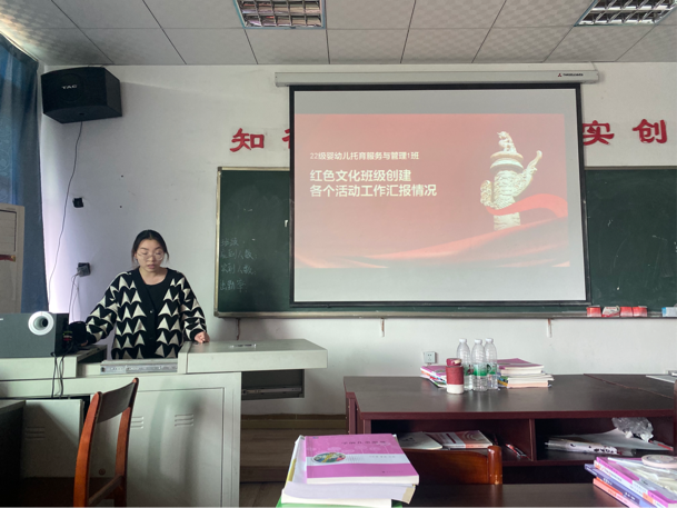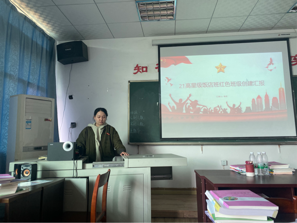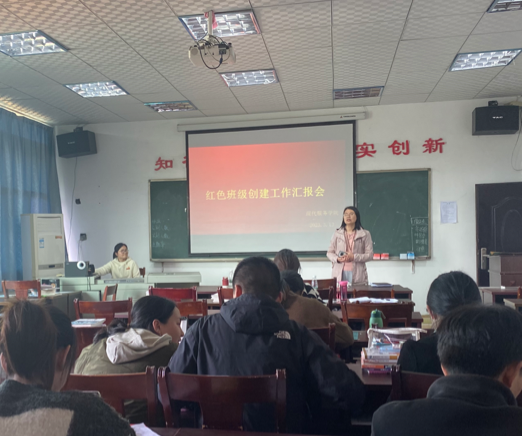 交流会上,各辅导员班主任结合去年一年的红色班级建设工作,通过ppt,介绍了本班的建设情况,充分展示了各班活动的亮点。其中,雷世华老师介绍,本班为营造红色文化氛围,在教室里进行了红色文化主题的环创;张乐老师所带班级结合酒店管理专业特色,制作了“红色菜单”,重温革命艰苦岁月;郭诗琪老师班级强调红色文字入脑入心,创建“书香班级”,评选“阅读达人”等。