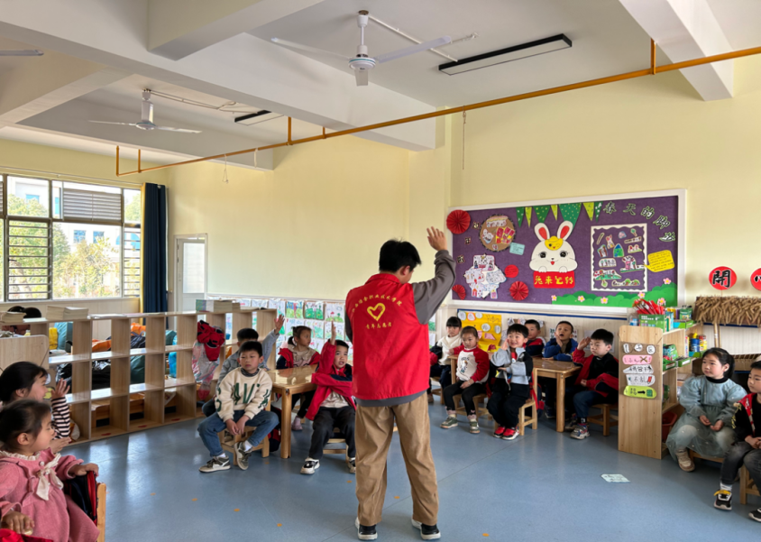 分院青年先锋队志愿者来到了仙女湖远大幼儿园,给小朋友们讲雷锋故事、教唱雷锋歌曲、传播雷锋精神。