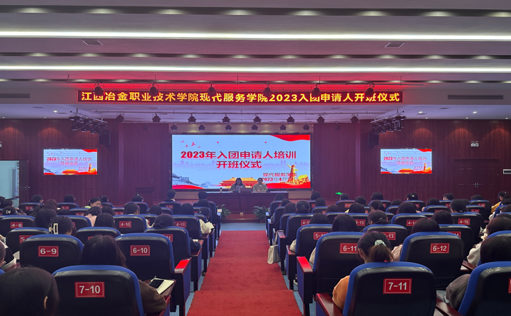 【现代服务学院周明霞报道】2023年4月23日,现代服务学院“入团申请人培训班”开班仪式在北校区图书馆报告大厅举行。会议由团总支书记周明霞主持,党支部书记欧阳小缨出席仪式。
