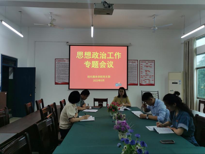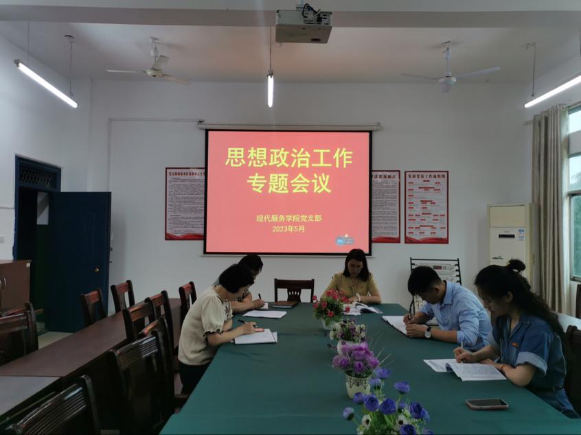 【现代服务学院罗曦报道】2023年5月6日上午,现代服务学院在北区老三教党员会议室召开了思政工作专题会。会议由分院党支部书记欧阳小缨主持。