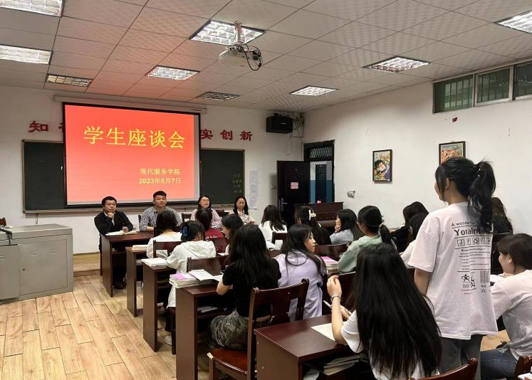 【现代服务学院赵令弘报道】为关心关爱学生,了解学生的诉求,现代服务学院于5月7日在北校区503教室召开了2023年春季学期学生代表座谈会。会议由郭鹏副院长主持,党支部书记欧阳小缨出席会议。