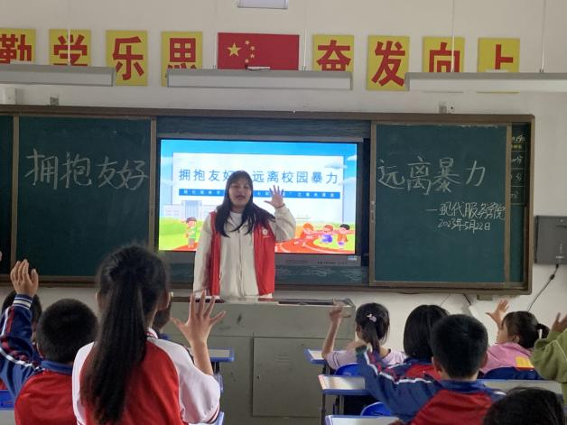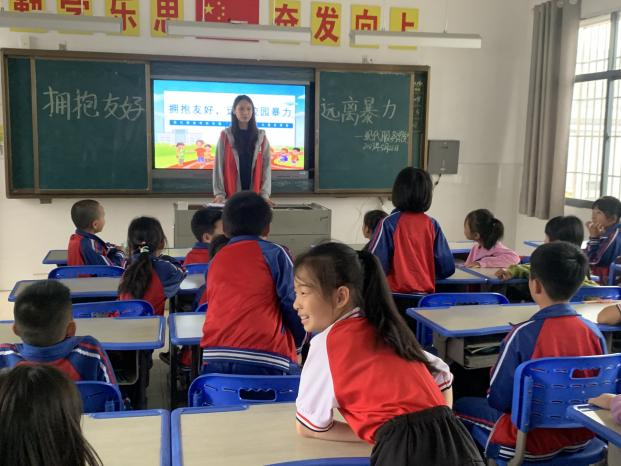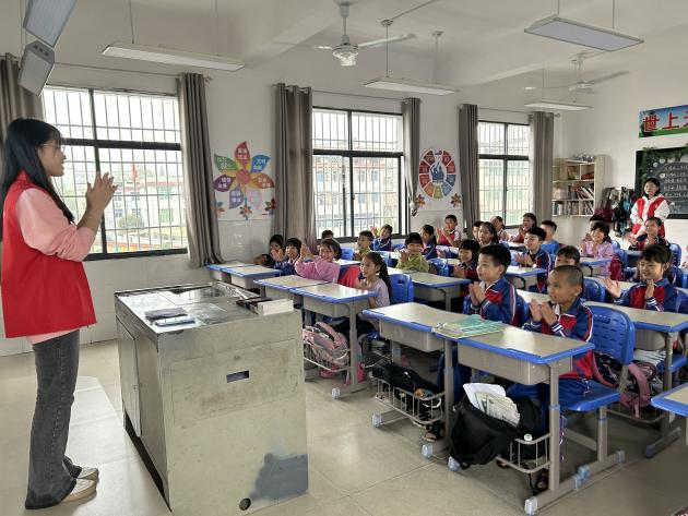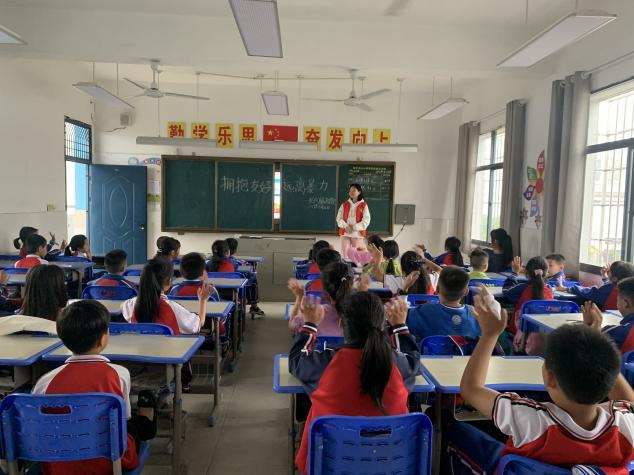 【现代服务学院曾慧婷报道】在“5·25”心理健康日来临之际,现代服务学院组织青年先锋队前往仙女湖河下镇中心小学,送教下乡,“七彩课堂”之“青色课堂”开讲。