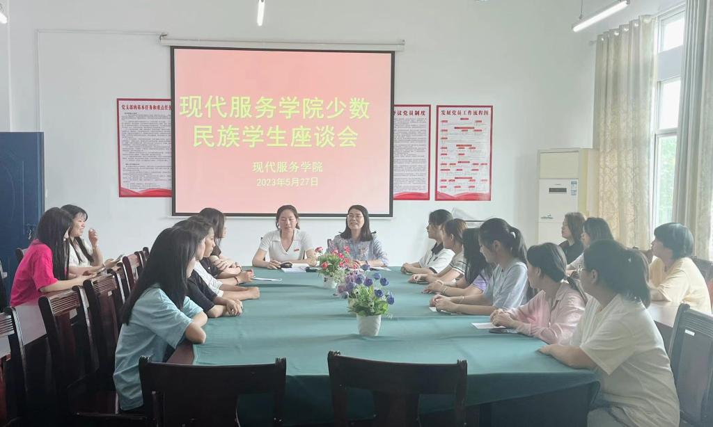 【现代服务学院王慧婷报道】 5月27日下午,现代服务学院组织召开了少数民族学生座谈会。党支部书记欧阳小缨主持会议,分院少数民族学生参加了本次座谈会。