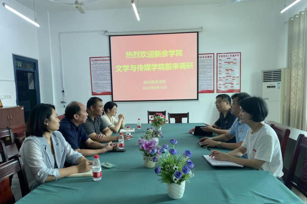 【现代服务学院赵令弘报道】6月16日,新余学院文学与传媒学院党委书记、院长田建鑫一行四人来到现代服务学院进行工作调研,现代服务学院院长阮和平、副院长江敏、就业干事敖敏军及20级高职辅导员参加了调研会。