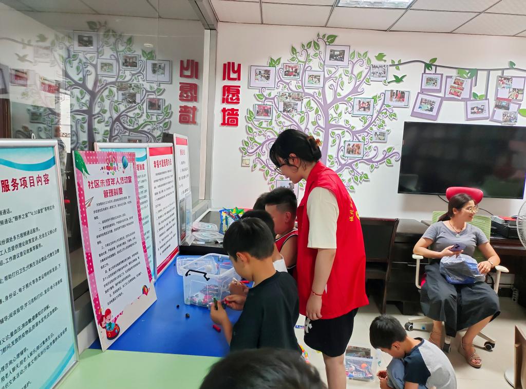 【现代服务学院徐卉报道】7月10日,现代服务学院青年先锋队成员廖雨薇跟随社区工作人员一同开展“童心港湾,暖心相伴”暑期托管活动。