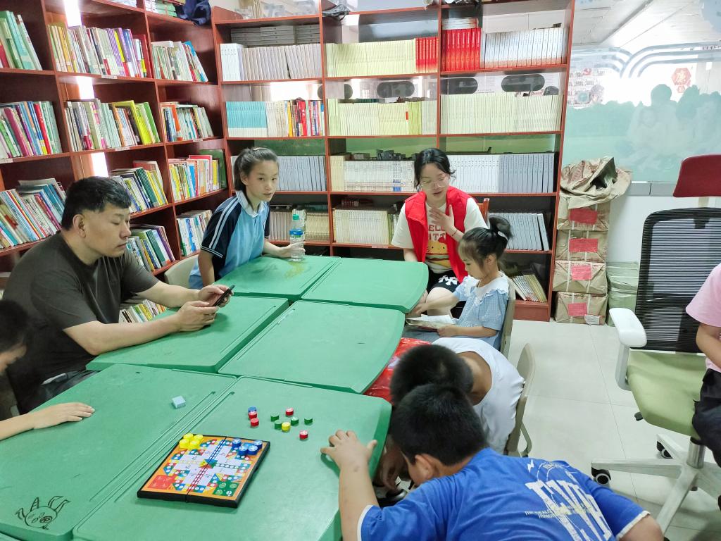 在爱心陪伴过程中,廖雨薇同学不仅为孩子们讲解了暑期防溺水相关知识,为孩子们开展爱心辅导、绘画手工等课堂活动,同时为锻炼孩子们的手眼协调能力,组织开展了“投壶”“套圈”等趣味游戏。