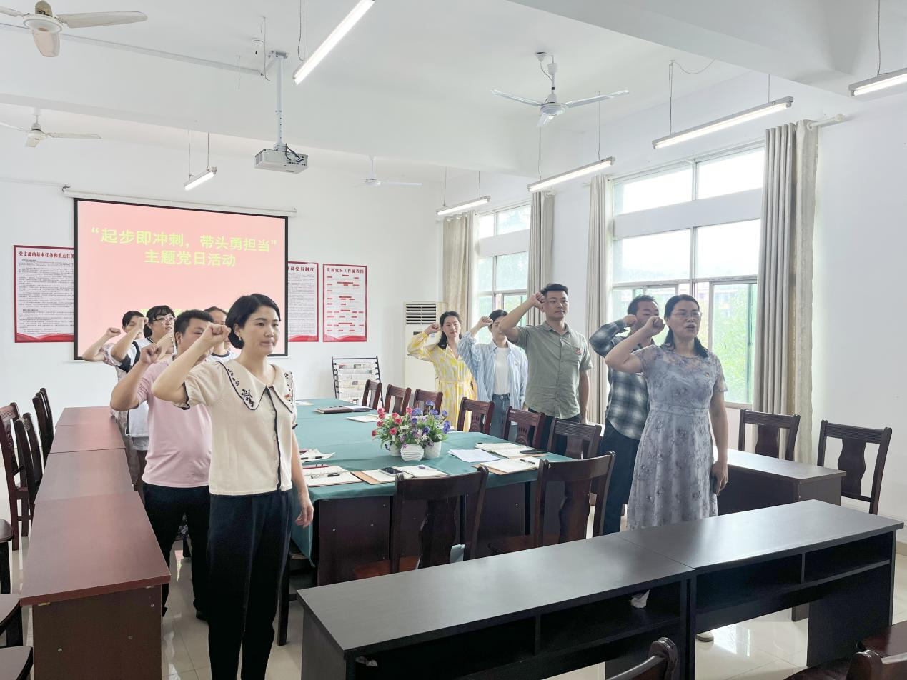 活动伊始,全体党员在欧阳小缨的带领下,面向党旗重温入党誓词。