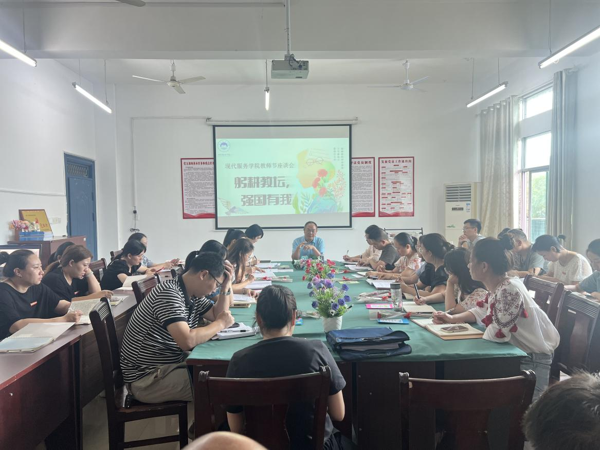 【现代服务学院徐卉报道】“三尺讲台育英才,春华秋实桃李兴”。9月8日,在第39个教师节来临之际,现代服务学院召开庆祝第39个教师节慰问座谈会。校领导彭全出席,分院全体教职工参加。
