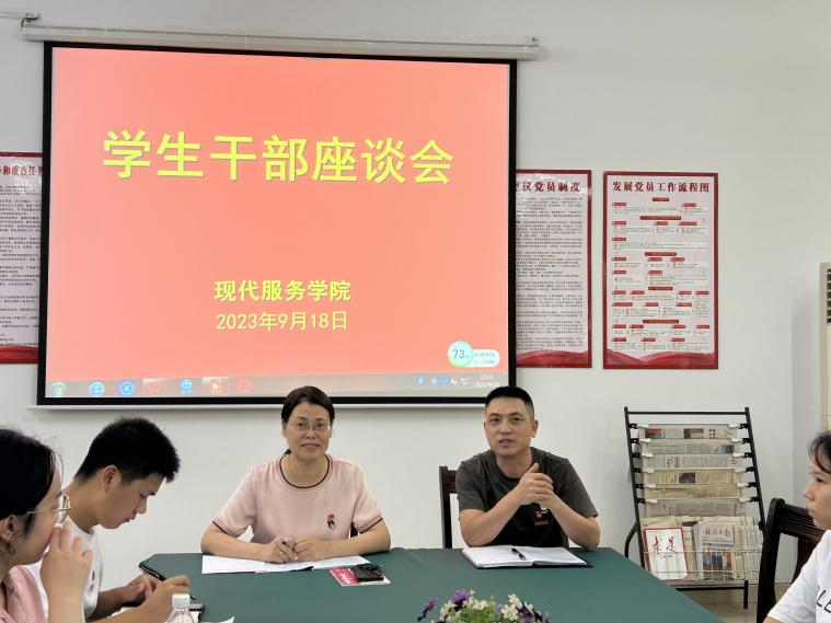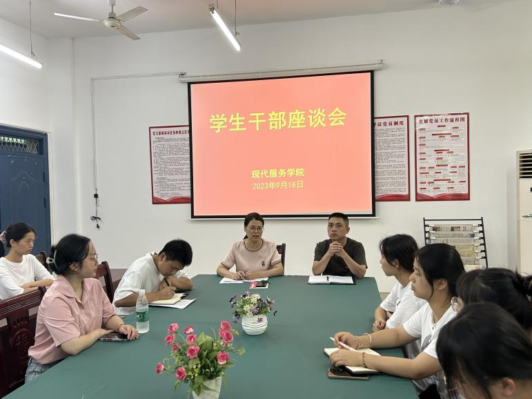 【现代服务学院周明霞报道】9月18日,现代服务学院召开学生干部座谈会,听取学生干部建议,探讨提升分院学生管理工作的路径方法。