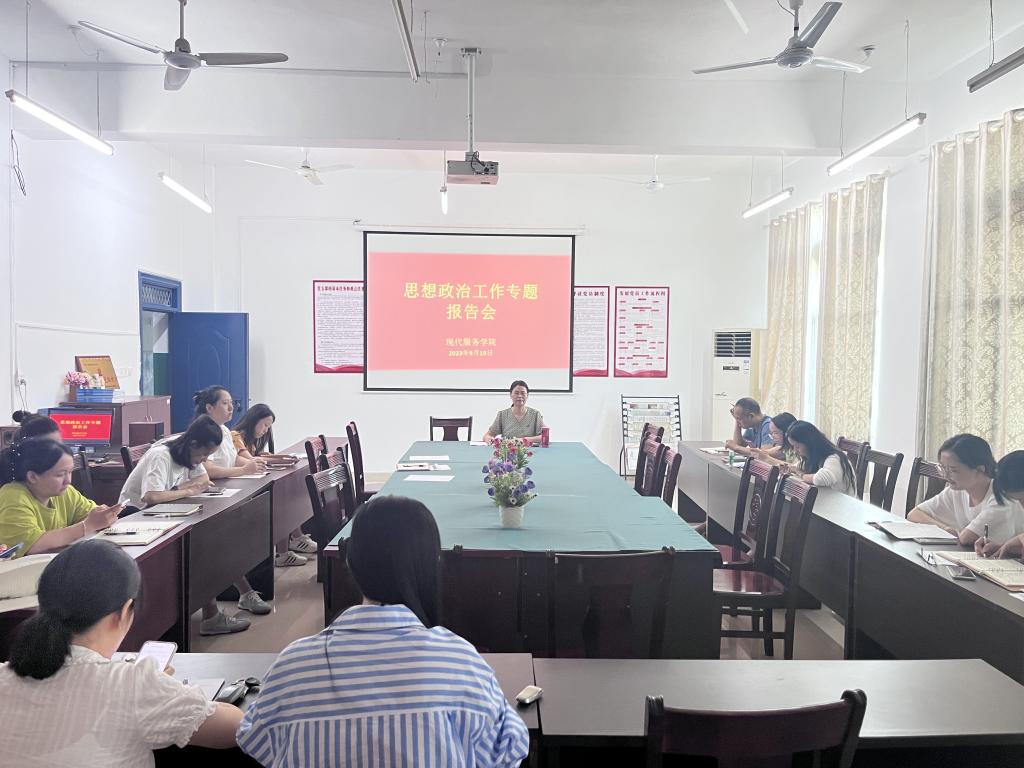 【现代服务学院文维报道】9月19日下午,现代服务学院在北校区三教党员活动室召开教职工思想政治工作专题会,总结工作,布置任务。会议由分院党支部书记欧阳小缨主持,全体教职工参加。