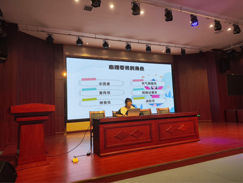 接着,徐卉老师从心理委员的角色定位和职责、需要关注的群体、工作方法及注意事项等方面对心理委员进行了培训,强调心理委员可以协助班主任和心理老师深入、及时地了解班级同学的心理状况,发现有心理困扰或烦恼的同学给予关心与支持;遇到突发事件可以在第一时间与老师取得联系并进行处理,避免不必要的伤害;配合心理老师做好心理健康教育宣传工作,为心理健康教育贡献一份力量。