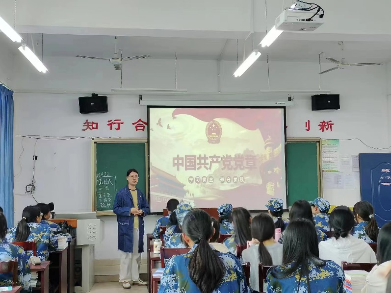 欧阳小缨从“什么是《党章》、为什么要学习《党章》、如何学习《党章》”等三个角度进行了阐释和解读,并要求同学们,在日常生活学习中要加强党史和党建理论学习,树立正确的世界观、人生观、价值观。