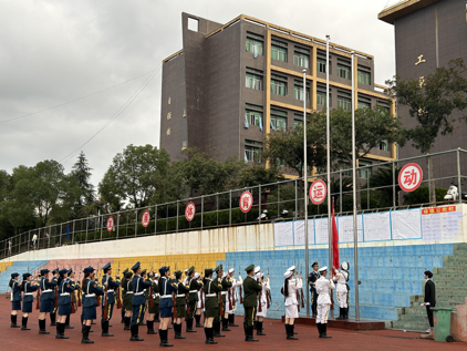 活动第二项,由2023级高职学生代表尹煜天进行国旗下的演讲,主题为《爱我国防,强国有我》。他说道:作为新时代的我们,一定要勿忘昨天的苦难辉煌,无愧今天的使命担当,不负明天的伟大梦想,承担新时代青年的责任和担当。