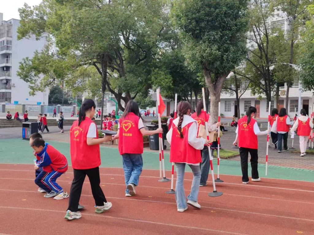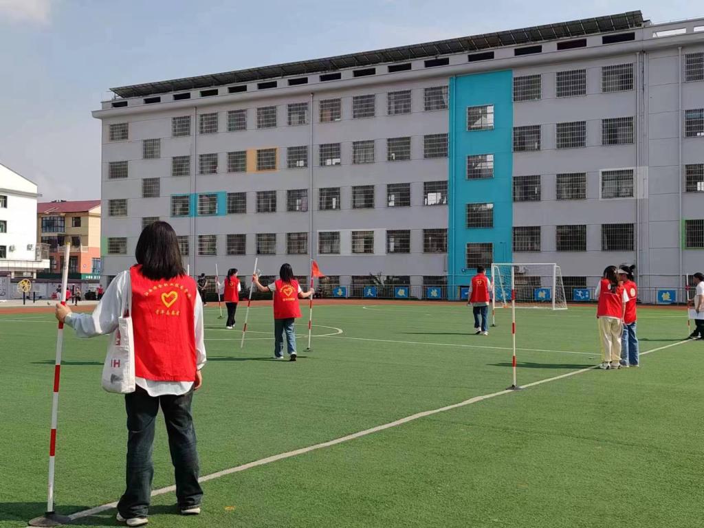 活动伊始,志愿者们第一时间来到运动场,按照分工,她们分别负责2个比赛项目和运动会的图像采集工作。志愿者们迅速进入角色,帮助老师们规划比赛场地、贴胶带、拉标杆等,为亲子运动会做赛前准备工作,以确保运动会的安全有序进行。