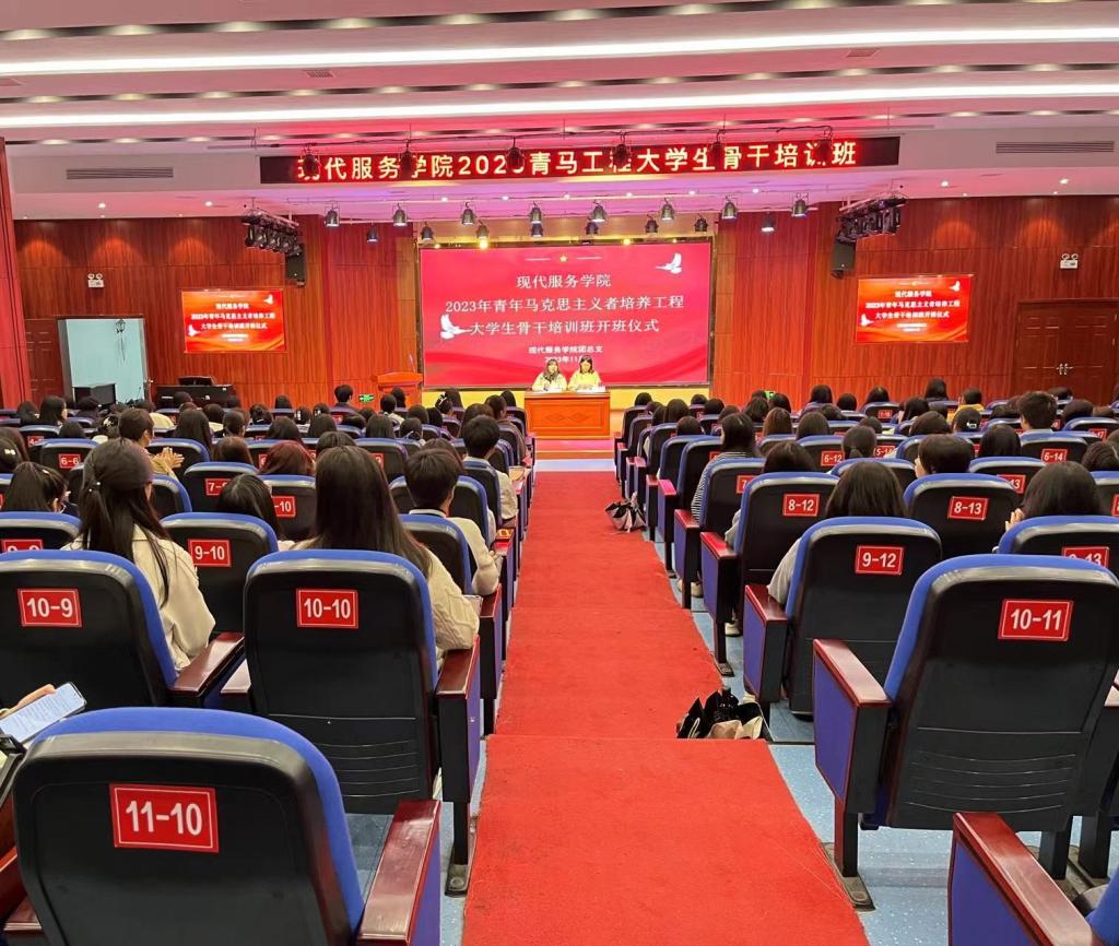 【现代服务学院徐卉报道】11月18日,现代服务学院“青马工程”大学生骨干培训班开班仪式在图书馆报告大厅举行。分院党支部书记欧阳小缨出席,团总支书记徐卉主持,青马班全体学员参加。