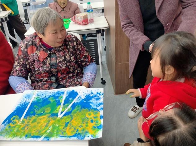 在美术课中,志愿者指导小朋友们自由发挥,在一张张画纸上涂涂画画,画纸上留下的不只是颜料,还有他们的难忘回忆。绘画完成后,小朋友们把自己的作品送给老人并送上了真挚的祝福,老人们纷纷表示:这个冬天,心很暖。