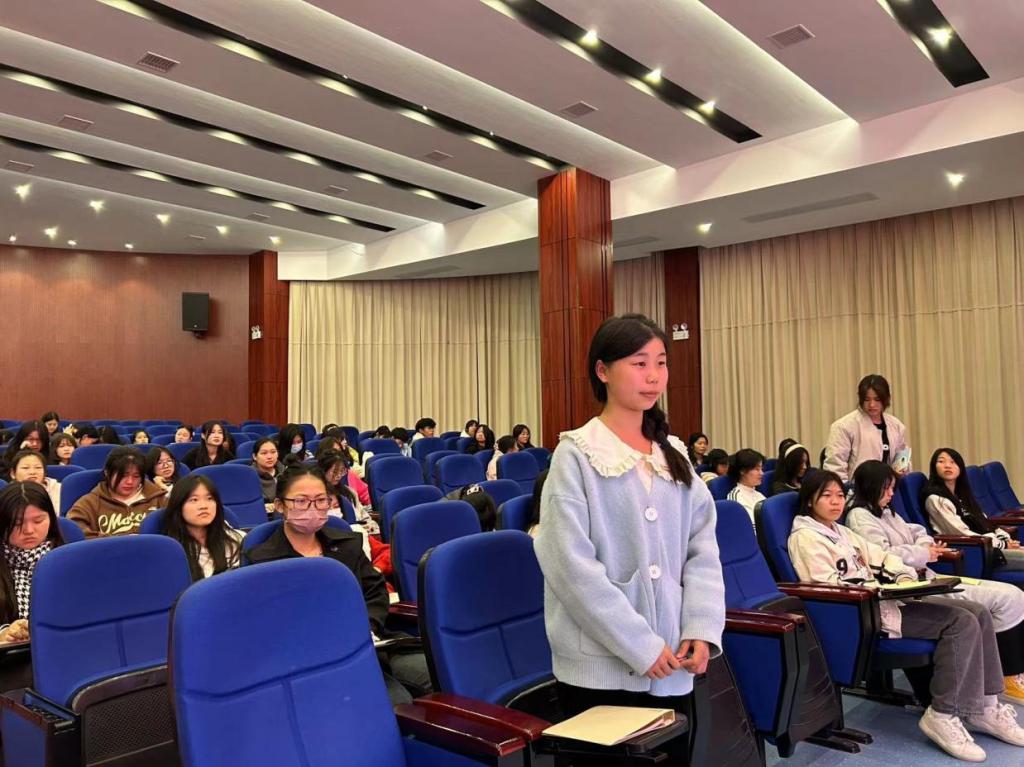 在讲课过程中,徐卉与同学们进行了互动交流。她耐心解答了学生们的疑问,并鼓励她们树立自信,勇敢地去追寻自己的理想。通过互动交流,同学们更加深入地理解了理想的力量,也更加清晰地辨明了自己前进的方向。