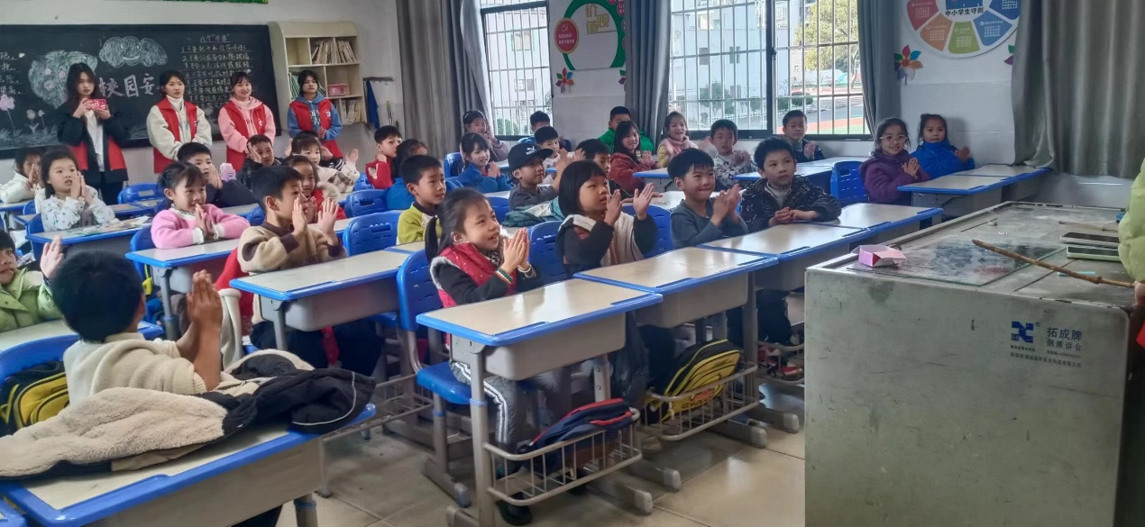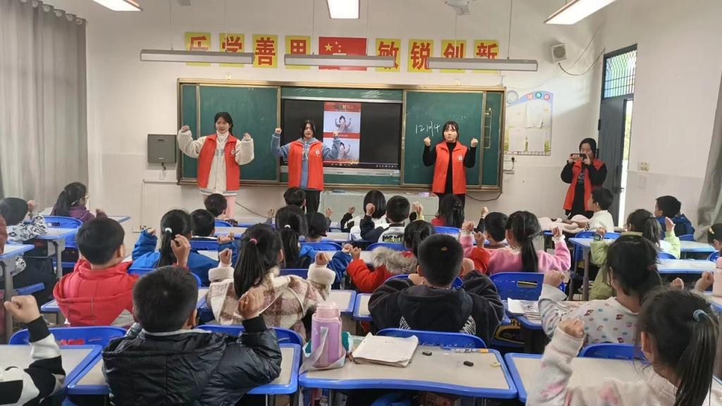 志愿者们针对小学生的年龄特点和认知能力,用通俗易懂的语言,围绕宪法的概念、特征、发展等内容展开生动讲解。随后,志愿者和孩子们开展了宪法小游戏——大风吹来宪法小知识。游戏通过知识问答的方式让孩子们全面了解应如何做一名宪法小卫士,并带领孩子们练习 “宪法伴我成长”手势舞。活动现场气氛热烈,孩子们的笑声在耳边萦绕。