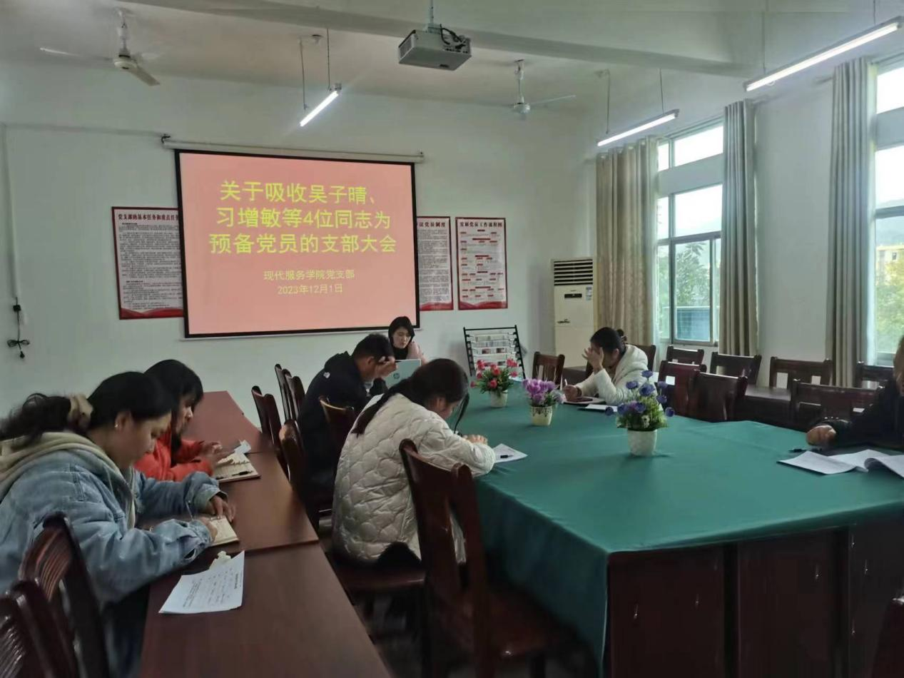 【现代服务学院廖斐报道】近日,现代服务学院党支部在三教207党员活动室召开党员大会。大会由现代服务学院副院长、群工委员江敏主持,支部全体党员参加。