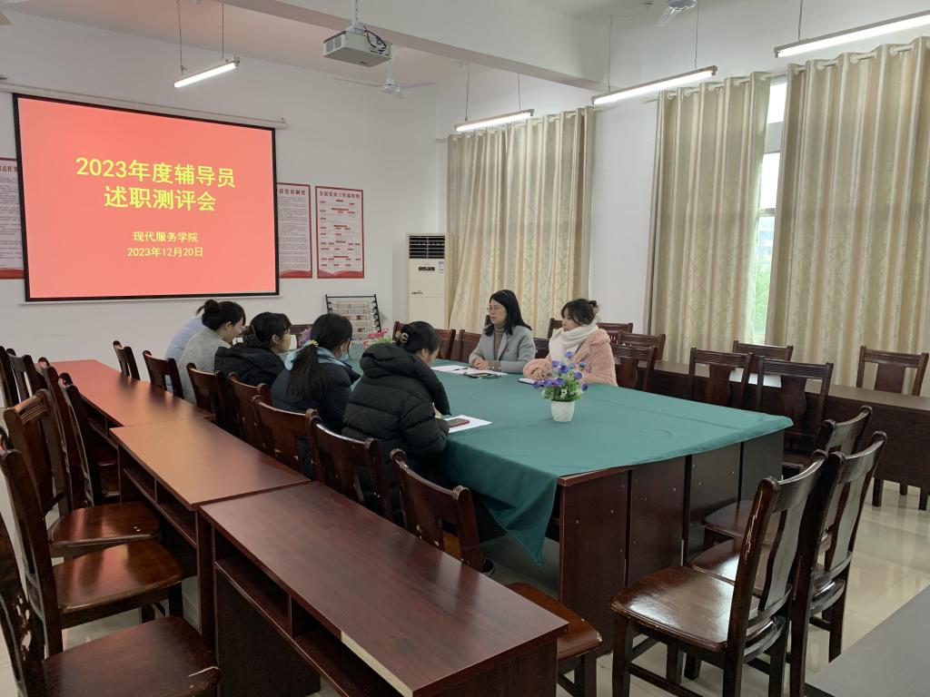【现代服务学院周佳雪报道】2023年12月20日上午,现代服务学院召开专职辅导员述职测评会,总结过去一年的工作成果,分享经验,报告未来的工作计划。