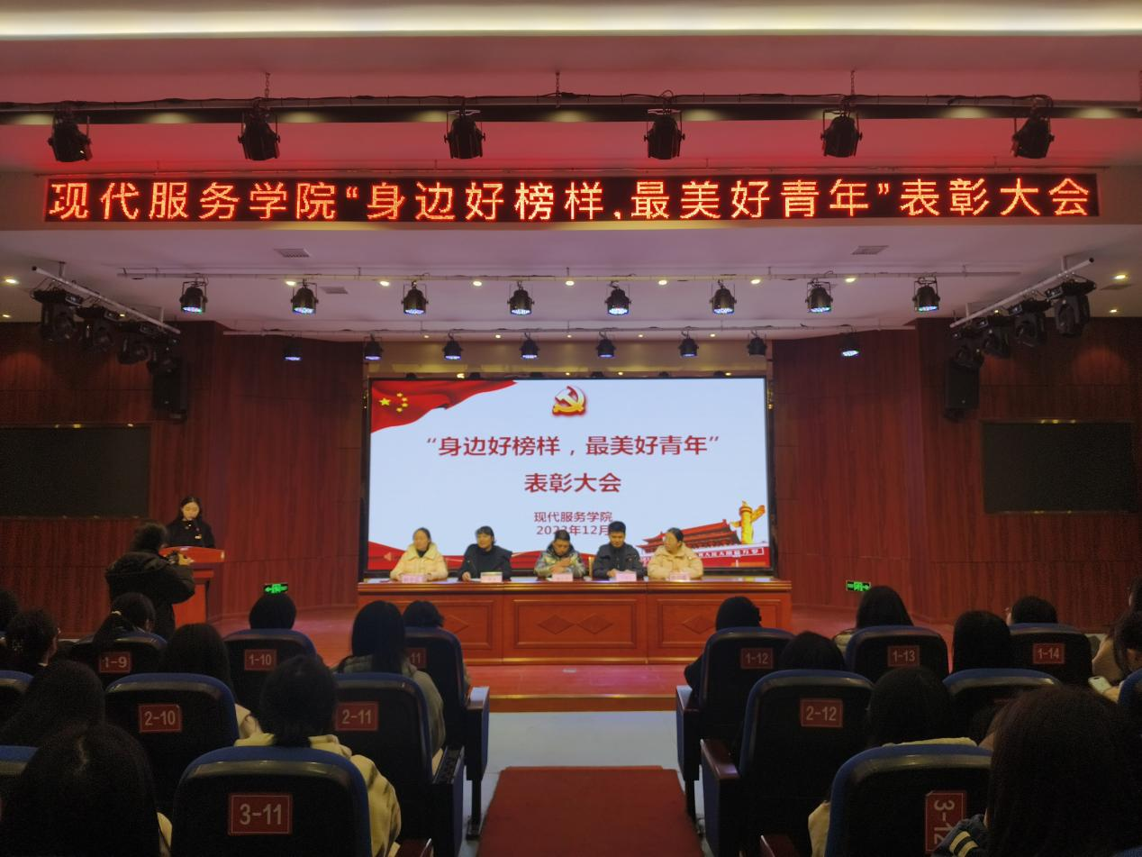 【现代服务学院徐卉报道】12月24日,现代服务学院在学校报告大厅召开“身边好榜样,最美好青年”表彰大会。会议由学生会主席卢祎主持,分院副院长胡小平、团总书记徐卉、学生科长李昶志、专职辅导员赵令弘、专职辅导员周明霞出席会议,全体学生会成员参加。
