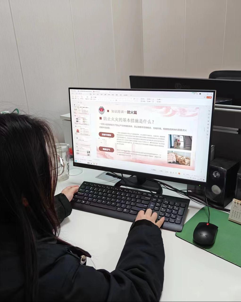 工作室负责人张敏婧老师结合工作室实际,利用案例和图文展示,为师生们上了一堂消防安全知识课,并组织培训师生进行了消防安全知识考试。