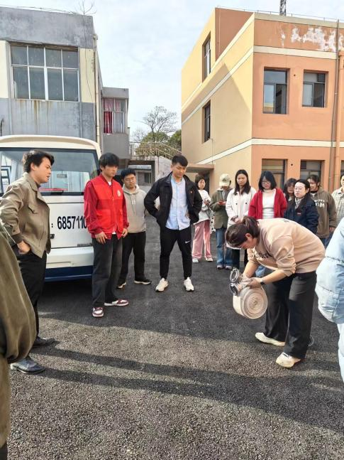 学校保卫处刘凯凯老师为师生们讲解并演示了干粉灭火器和消防栓的使用方法。在刘老师的指导下,师生们纷纷上前学习操作灭火器,体验灭火过程。现场演练井然有序。
