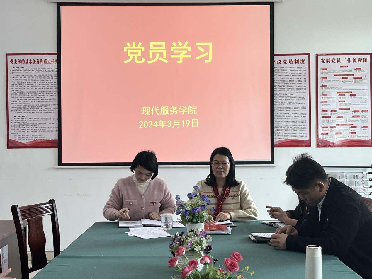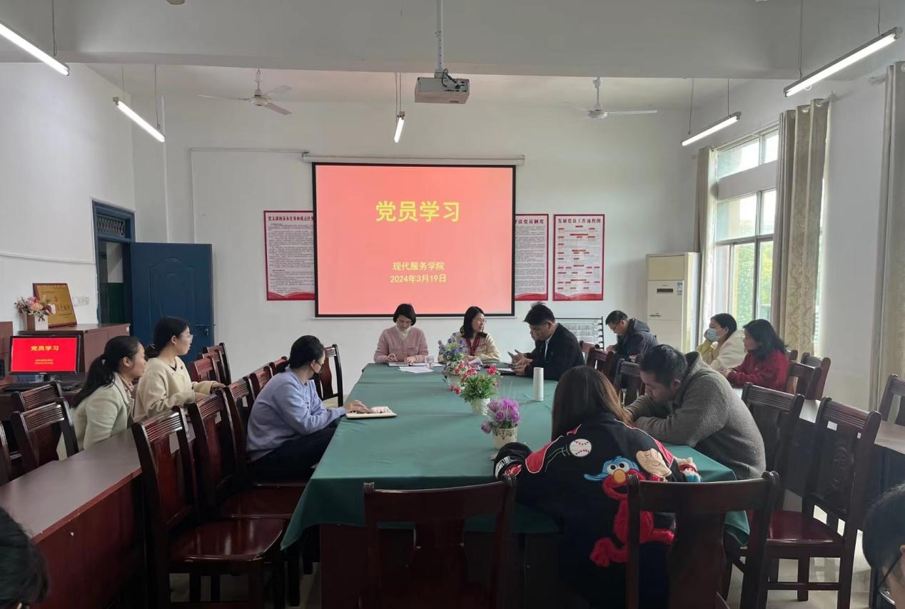 【现代服务学院廖斐报道】3月19日,现代服务学院党支部在北校区第三教学楼开展党员集中学习活动。学习活动由分院党支部书记欧阳小缨主持,党支部全体党员参加。