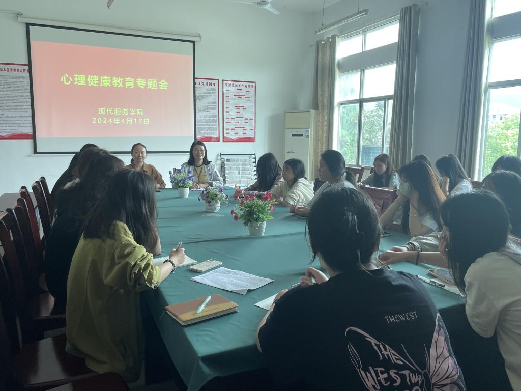 【现代服务学院赵令弘报道】4月18日,现代服务学院在北校区第三教学楼党员活动室召开心理健康教育专题会,通报学生的心理健康状况,布置下一步工作。会议由心理健康老师赵令弘主持,党支部书记欧阳小缨出席会议。