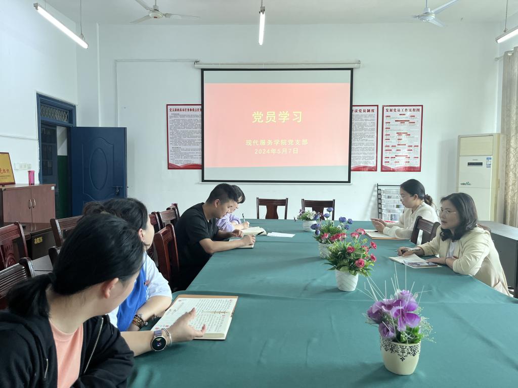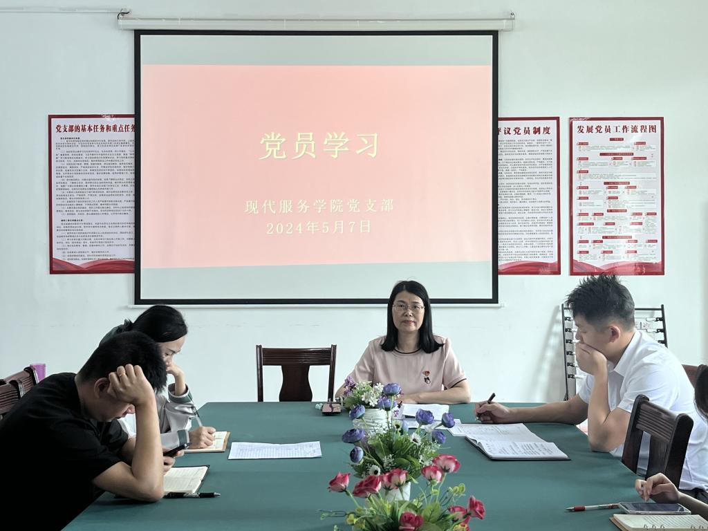 【现代服务学院廖斐报道】5月7日,现代服务学院党支部组织全体党员在北校区党员活动室深入学习《中国共产党纪律处分条例》,旨在进一步严明党的纪律,提高党员的纪律意识和规矩意识。本次学习活动由党支部书记欧阳小缨主持,全体党员教师参加。