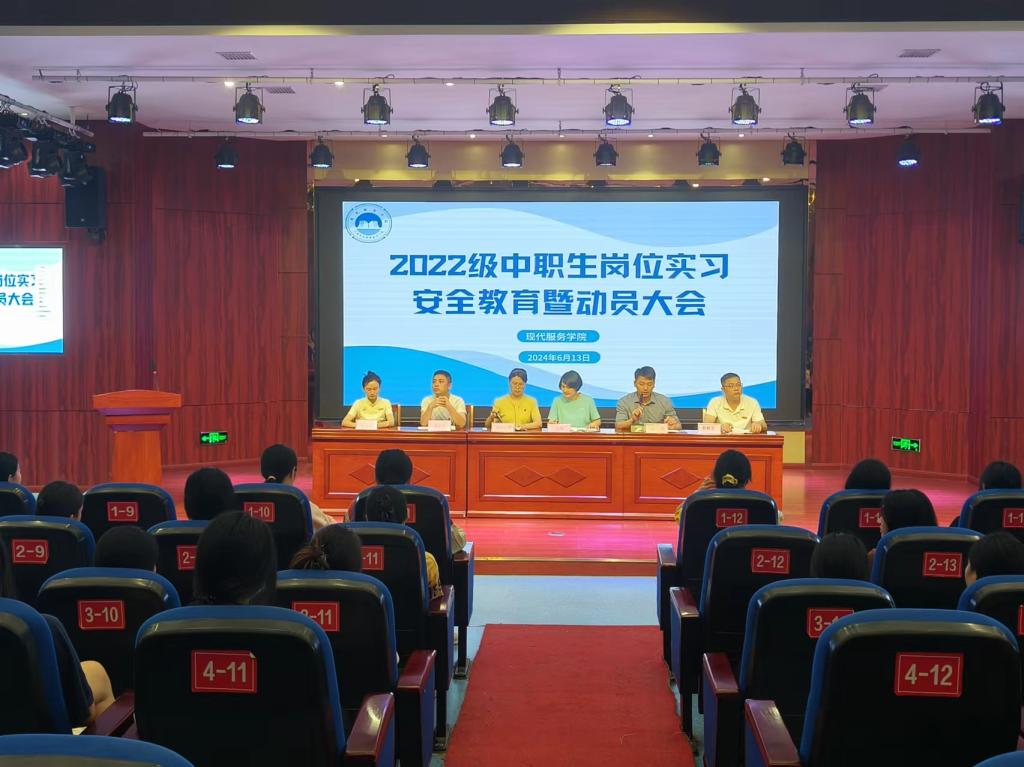 活动包括召开了2022级中职生岗位实习安全教育暨动员大会。会上,强调了实习的重要性,分析了实习期间可能遇到的安全隐患,对职业道德、法律法规等方面进行了强调。