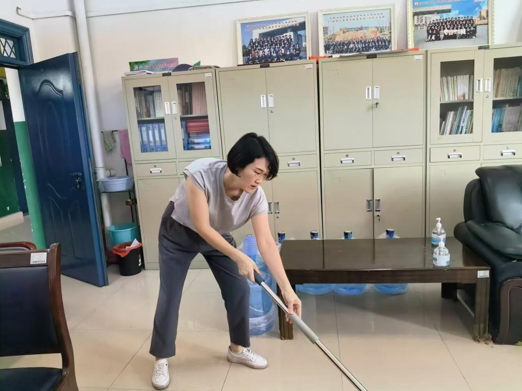 会后,全体党员开展了志愿服务活动。对办公室、教室、实训室等教学场所进行安全隐患大排查及卫生大打扫大整治,为秋季开学营造了干净整洁、清新宜人的校园环境。