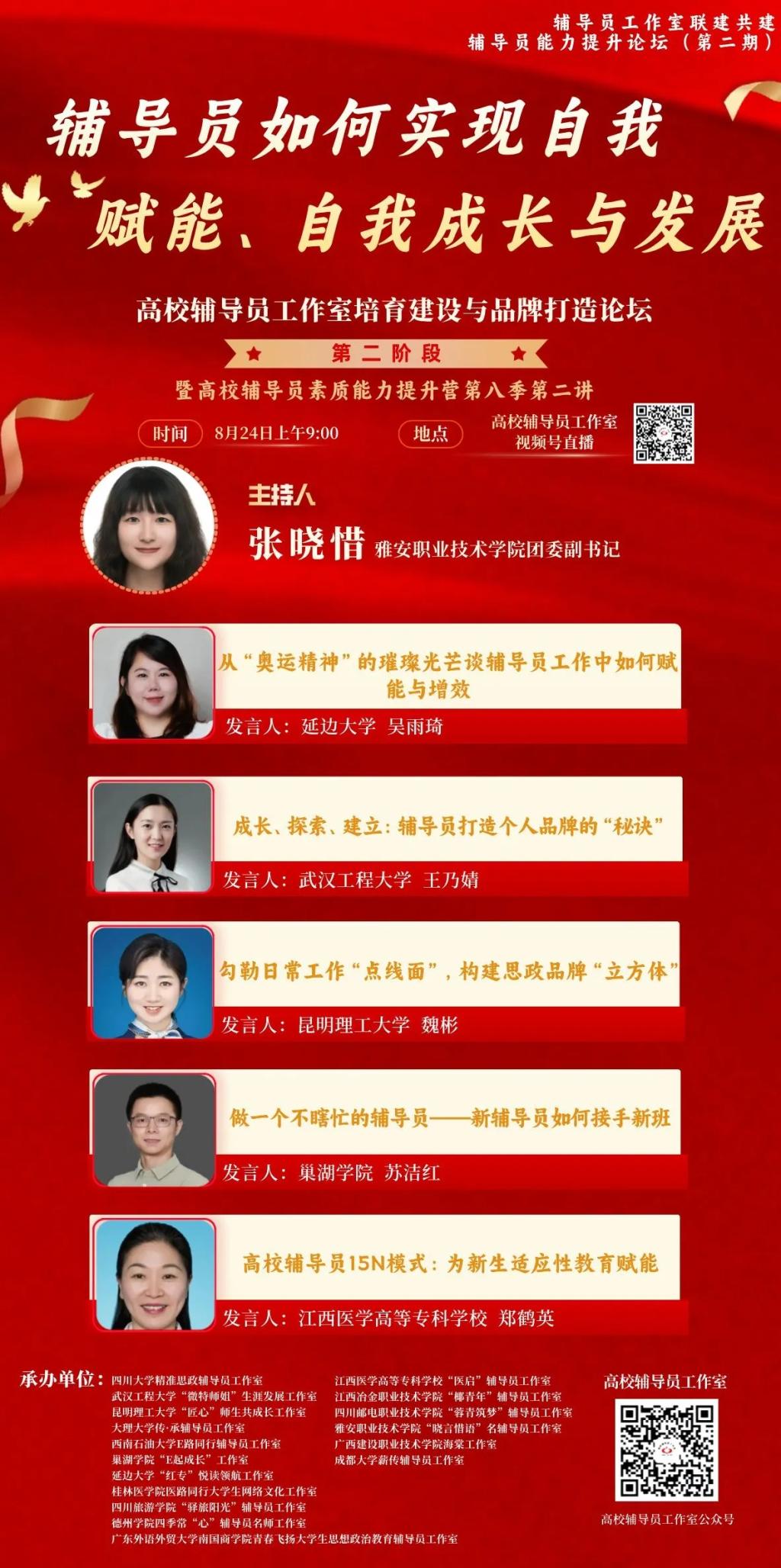 五节精心设计的课程,如同五颗璀璨的星辰,引领着辅导员们探索自我成长的新路径。从“奥运精神”中汲取力量,辅导员们学会了如何在工作中赋能增效,以更加饱满的热情和高效的策略面对挑战;通过“成长、探索、建立”的旅程,他们掌握了打造个人品牌的秘诀,让自己的工作更加鲜明而有影响力;在“勾勒日常工作点线面”的过程中,辅导员们学会了构建思政品牌的立方体,让思想政治教育在细微之处见真章;针对新辅导员,“做一个不瞎忙的辅导员”课程提供了宝贵的经验分享,帮助他们平稳过渡,高效接手新班级;而“高校辅导员15N模式”则为新生适应性教育注入了新的活力,助力辅导员们以更加专业和贴心的方式引导新生融入大学生活。