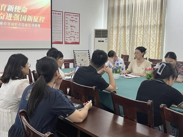 【现代服务学院周明霞报道】2024年9月4日,现代服务学院党支部组织全体党员观看了2024年高校党组织示范微党课《坚持教育科技人才“三位一体”,奋力谱写中国式现代化宏伟篇章》。