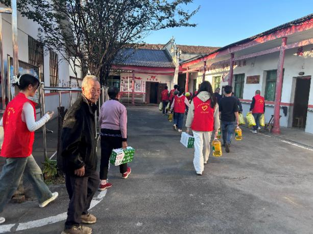 随后,党员们带着大米、食用油、牛奶等慰问物资,来到了花田村的颐养之家。大家与老人们进行了亲切的交流,了解老人们的身体状况、饮食情况、居住环境等,还向老人们宣传了党的二十届三中全会精神。