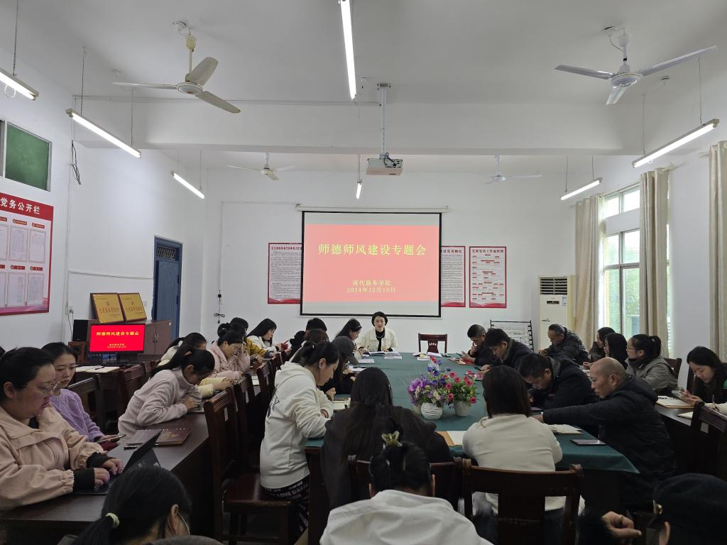 2024年12月10日,在北校区自强楼党员活动室,现代服务学院召开了思想政治工作专题会暨师德师风建设专题会。会议旨在进一步加强学院思想政治工作,提升教师队伍的师德师风水平,为培养德智体美劳全面发展的社会主义建设者和接班人提供坚强保障。