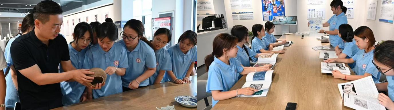 实地研学中,队员们走进湖田瓷社古陶瓷馆,在章晨指导下触摸宋元明清瓷片标本,指尖轻抚间感受“白如玉、明如镜”的瓷质精髓;在三宝蓬艺术聚落,与江西省高级工艺美术师滕道洋面对面交流,学习青花“料分五色”的技法密码,在“揉泥-拉坯-施釉”的亲手实践中领悟“七十二炼方成器”的匠心哲学。每晚的“感悟陶瓷文化”主题讨论中,队员们结合当日见闻,围绕“传统技艺如何破圈”等议题碰撞思想,让理论学习在实践中落地生根。